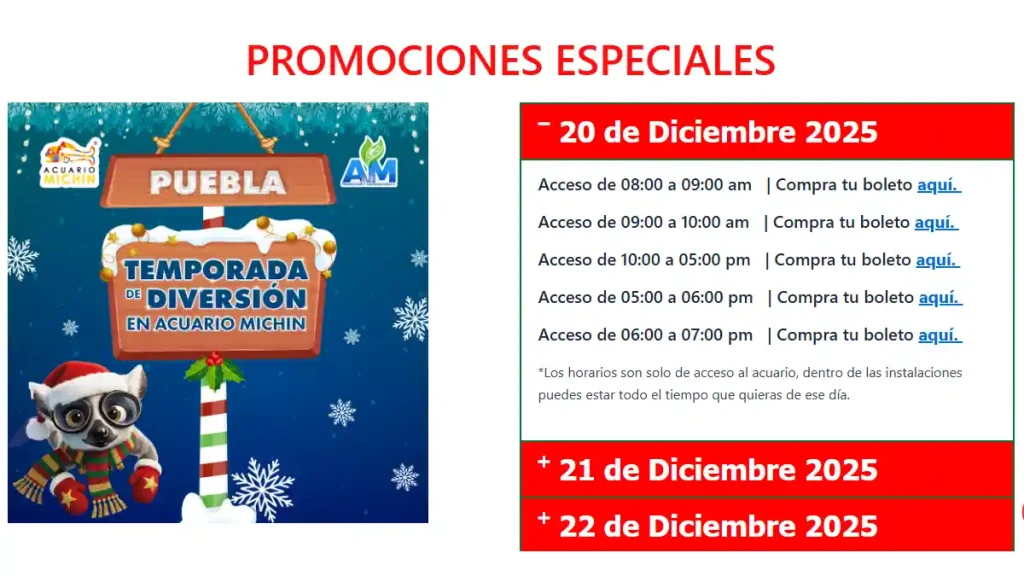 Si estás buscando opciones para los próximos días de descanso por las fiestas decembrinas, una excelente alternativa que puedes considerar es visitar el Acuario Michin Puebla.